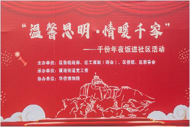 1月10日,思明區(qū)委統(tǒng)戰(zhàn)部、區(qū)工商聯(lián)(商會)聯(lián)合區(qū)統(tǒng)戰(zhàn)系統(tǒng)各部門及中華街道在僑批廣場聯(lián)合舉辦“溫馨思明·情暖千家”千份愛心年夜飯進社區(qū)活動。